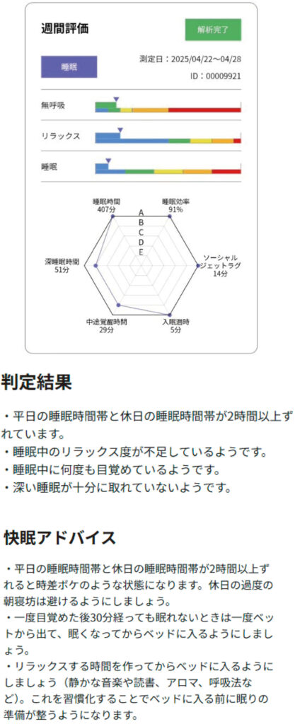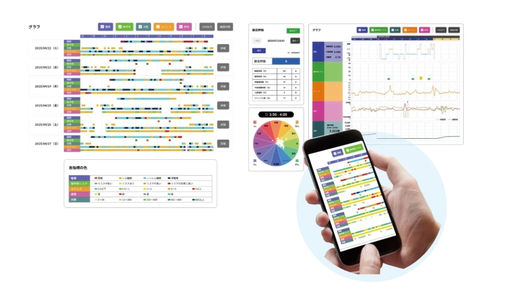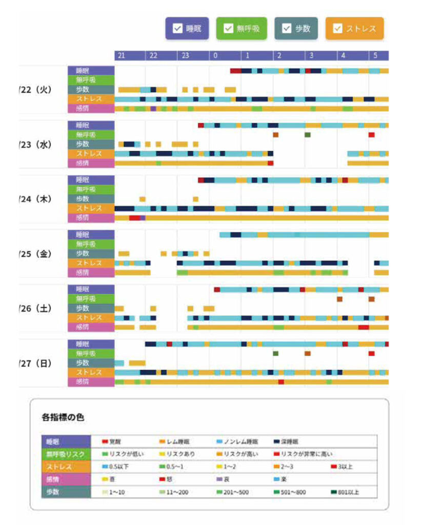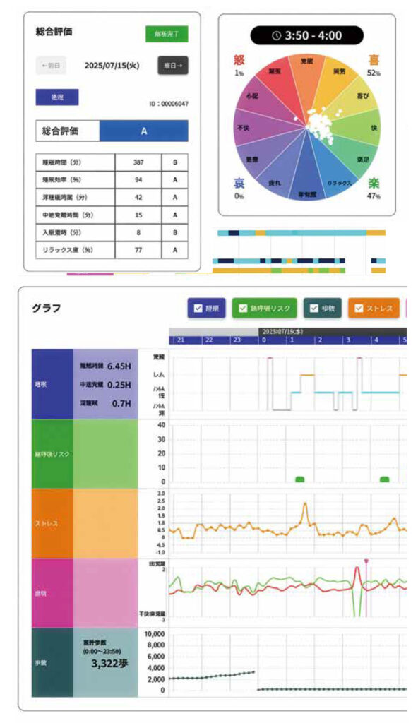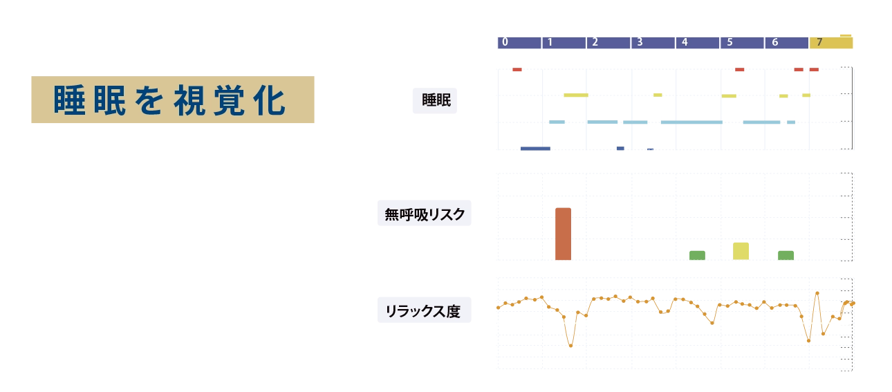 睡眠・無呼吸リスク・リラックス度を視覚化します。