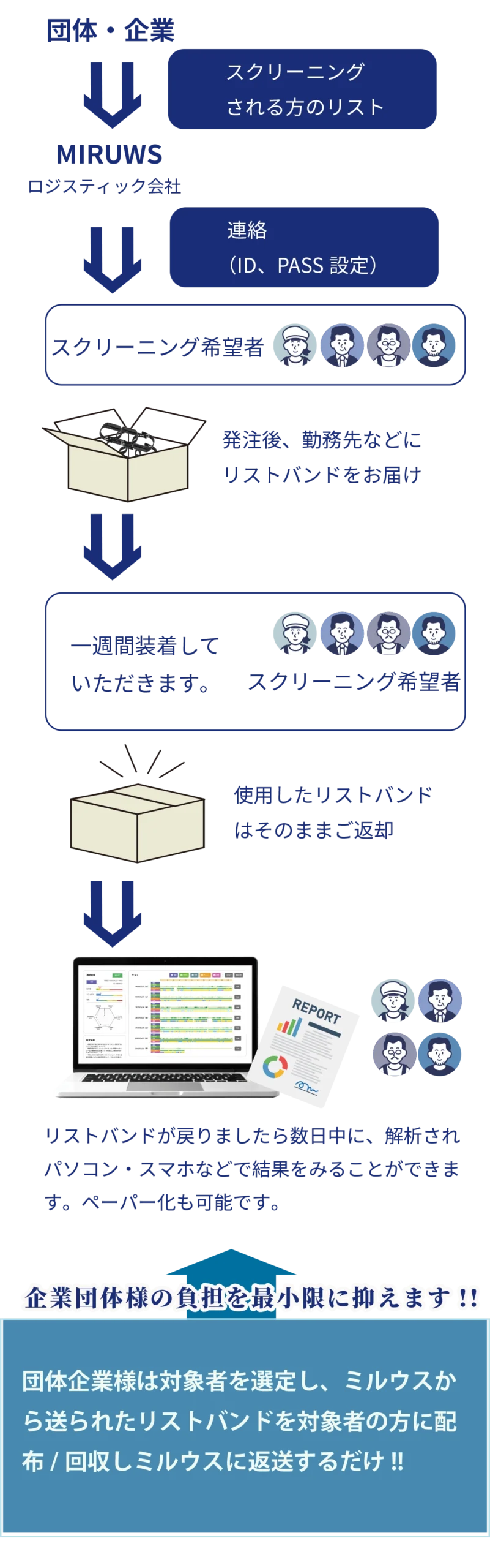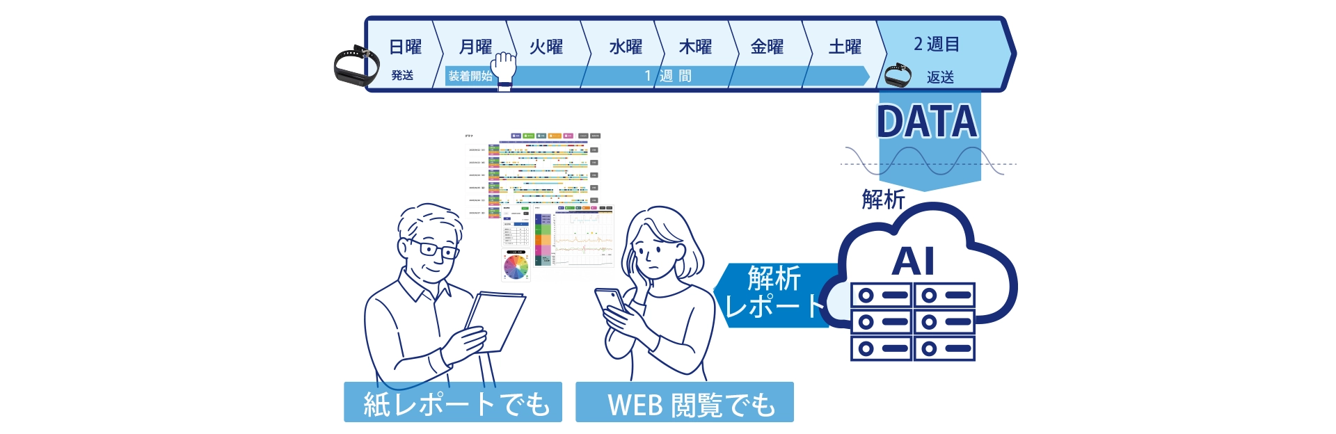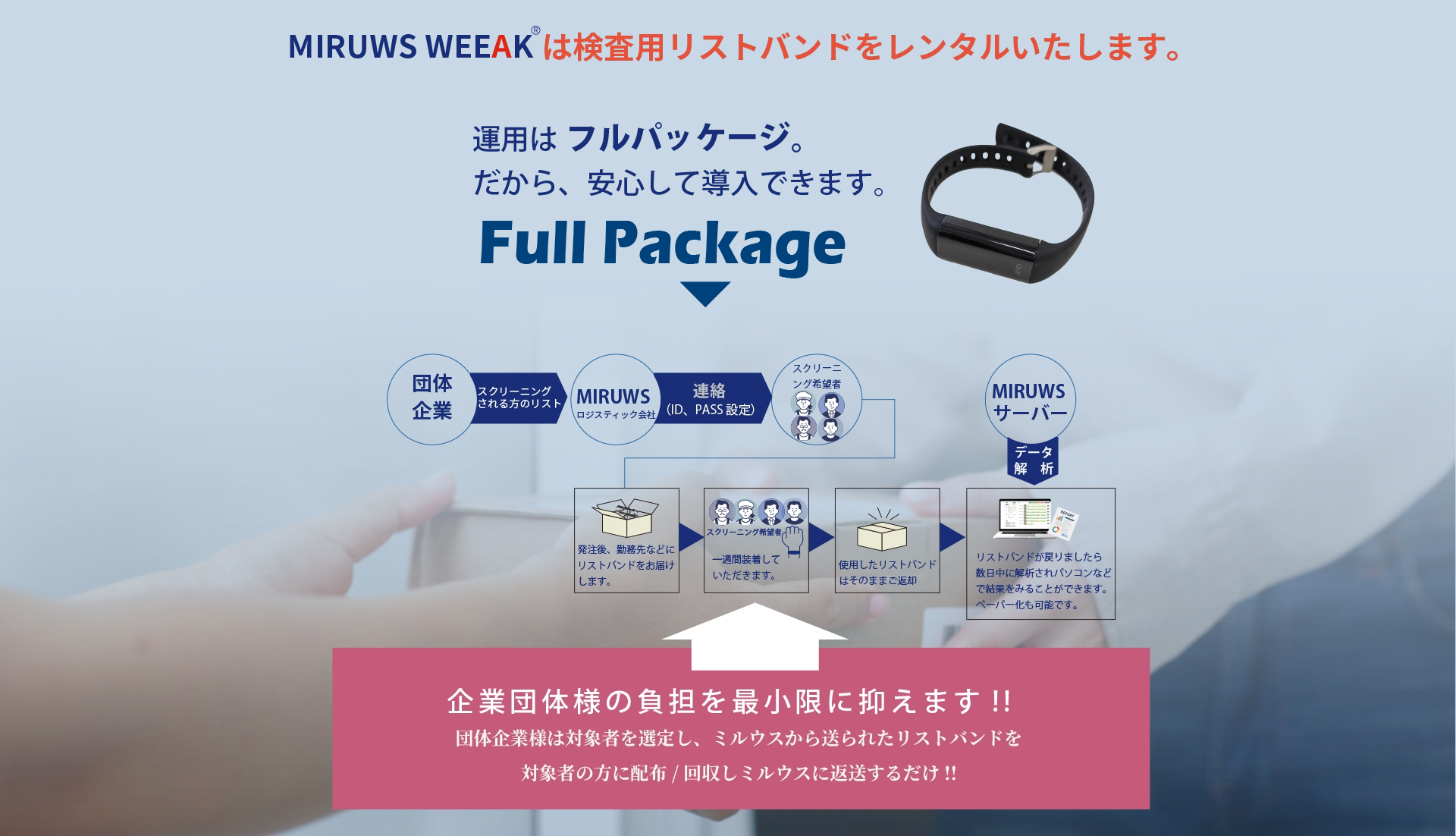・登録、機器レンタル、配送、装着、回収、解析、結果返却、問い合わせ対応まで。MIRUWS WEEAKは、運用をフルパッケージで提供します。