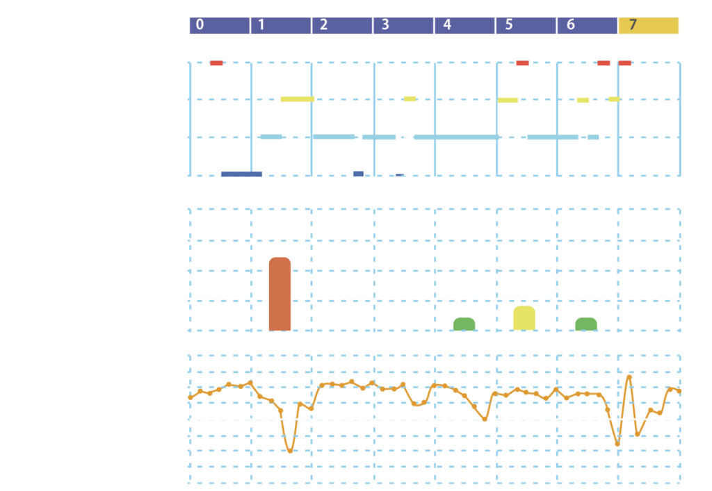 週間の総合データの提示だけでなく一日の時間軸に沿った詳細な解析データを提供します